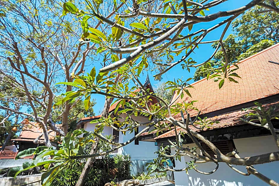 Thai-style bungalow features a private balcony and partial sea view.