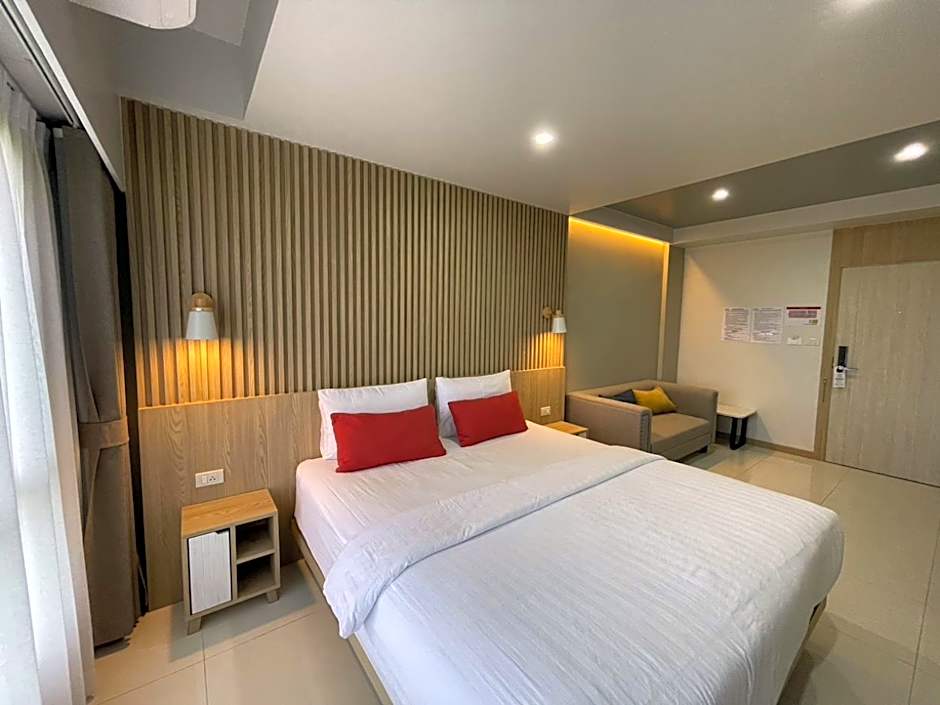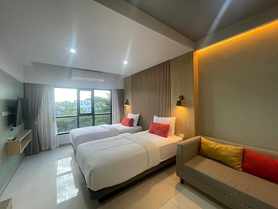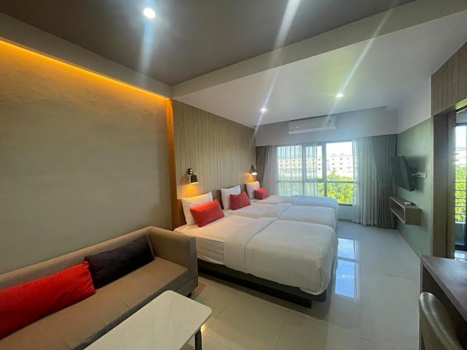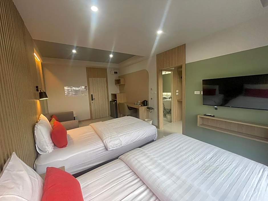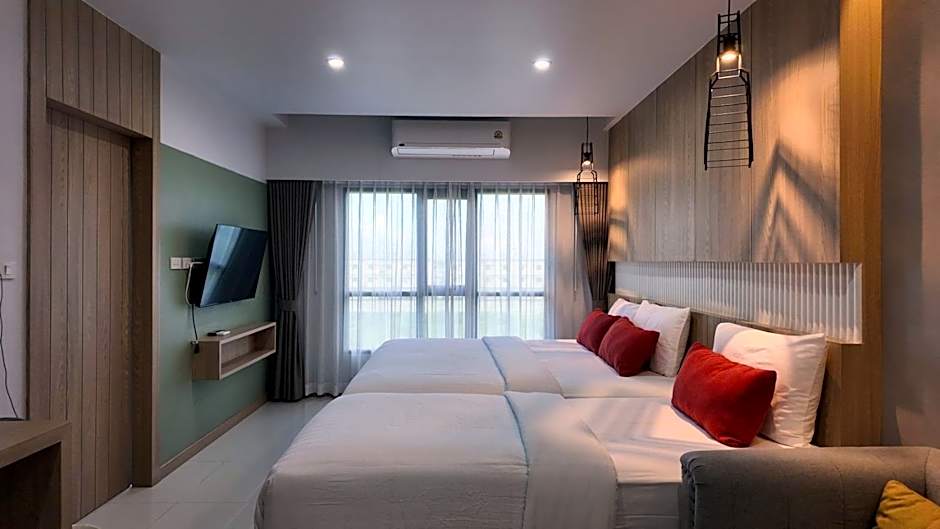 The Baanbangkok 97 Hotel Donmueang Airport offers three types of rooms. The Deluxe King Room and Deluxe Twin Room both accommodate two adults, while the Deluxe Triple Room accommodates three adults. Smoking is not permitted in any of the rooms. The room size for all three types is 377 sqft, and the Deluxe Triple Room has a combination of one twin bed and one king-size bed, while the other two room types have either one king-size bed or two twin beds.