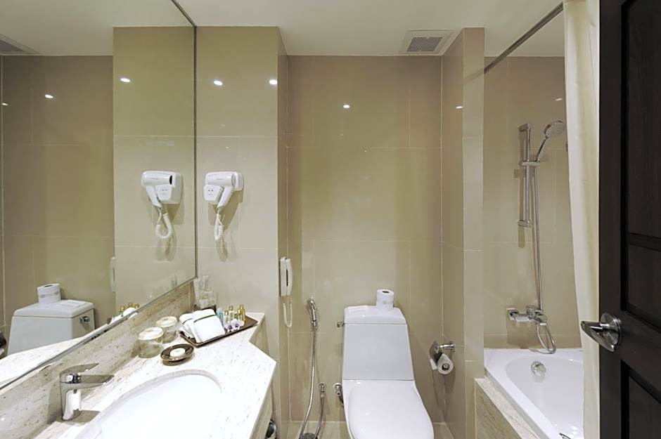 Guests at the Al Meroz Hotel Bangkok - The Leading Halal Hotel can spend their time enjoying a variety of leisure amenities. The hotel features an outdoor swimming pool where guests can relax and soak up the sun. There is also a kids' pool for younger guests to enjoy. For those interested in sports, the hotel offers a golf course where guests can practice their swing.