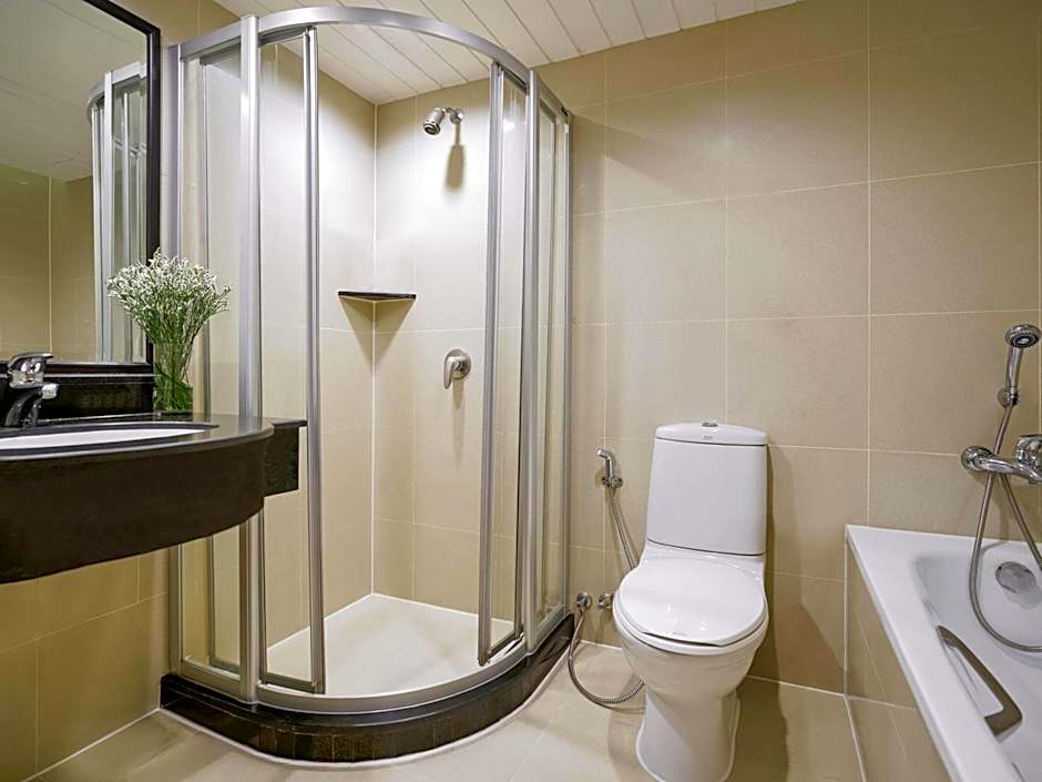 Offering free toiletries and bathrobes, this triple room includes a private bathroom with a bath, a shower and a hairdryer. The air-conditioned triple room offers a flat-screen TV with cable channels, a tea and coffee maker, executive lounge access, a seating area as well as city views. The unit offers 2 beds.
