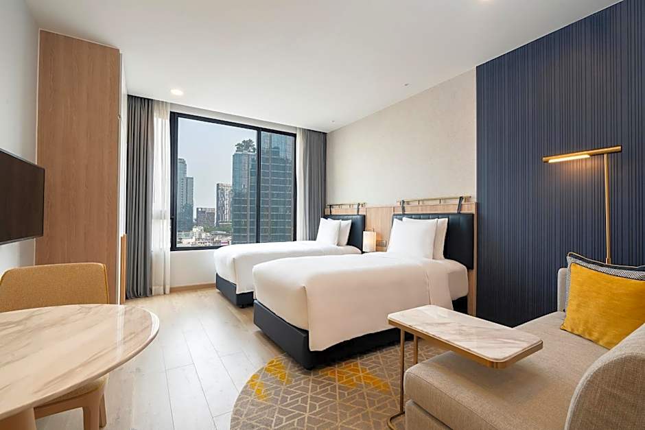 Staybridge Suites Bangkok Thonglor by IHG is ook huisdiervriendelijk, zodat alle gezinsleden mee kunnen op reis. Het hotel biedt een gratis pendeldienst, waardoor het gemakkelijk is om de bezienswaardigheden van Bangkok te verkennen. Met de gunstige ligging op slechts 5,6mi van het stadscentrum heeft u eenvoudige toegang tot alles wat Bangkok te bieden heeft. Mis deze fantastische hotelervaring niet, die comfort, gemak en uitstekende service combineert.