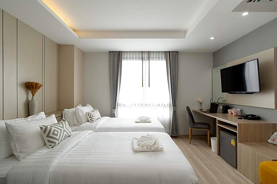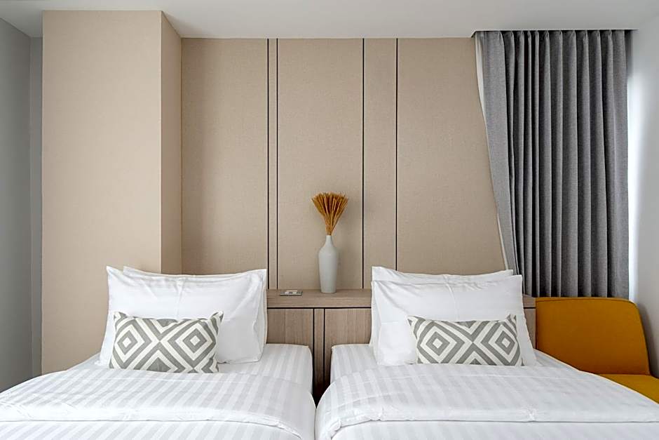 The Riski Hotel at Bangphlat Station SHA offers a variety of room options including Superior Twin Rooms, Suites, and Standard Twin Rooms. Each room type features twin beds and can accommodate two adults and one child. All rooms are non-smoking and vary in size from 194 sqft to 398 sqft.