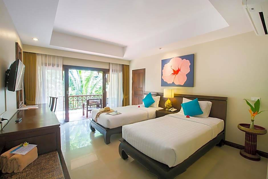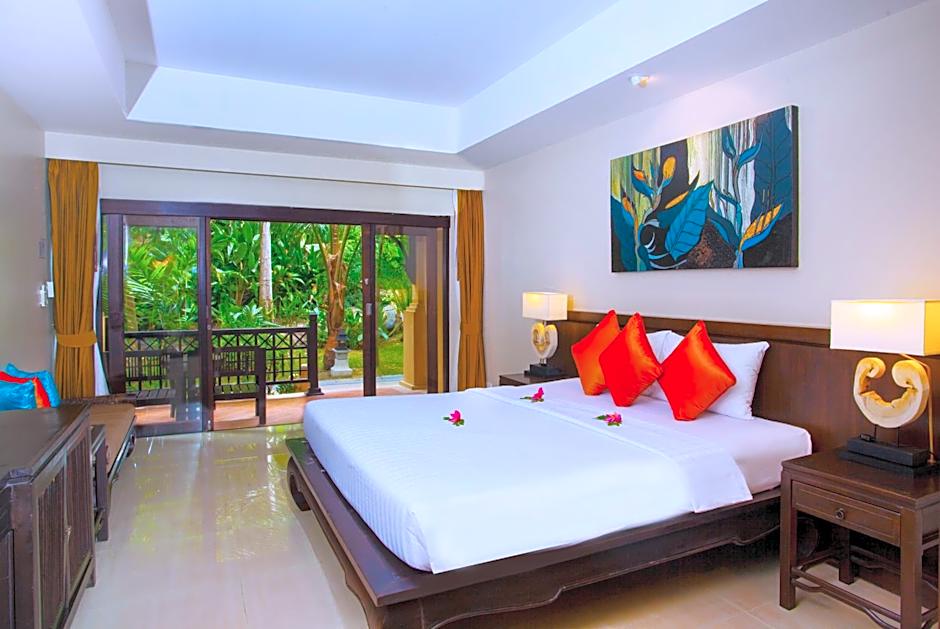 Located at the corner of the main building and close to the hill-top pool, this Thai-style family suite offers a private balcony and a living space. The private bathroom offers a separate bathtub and shower.