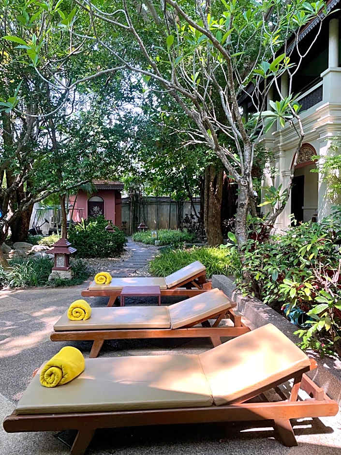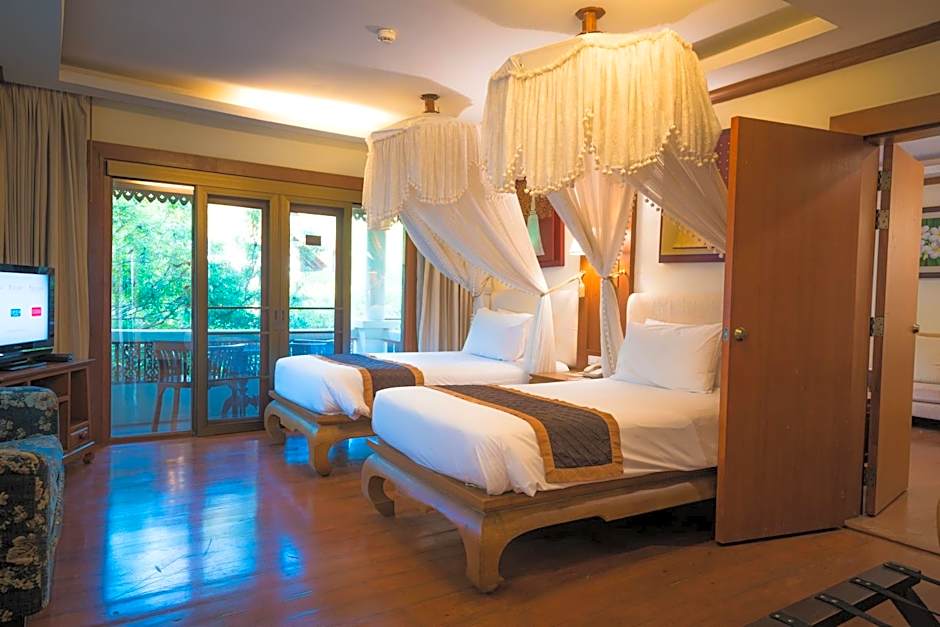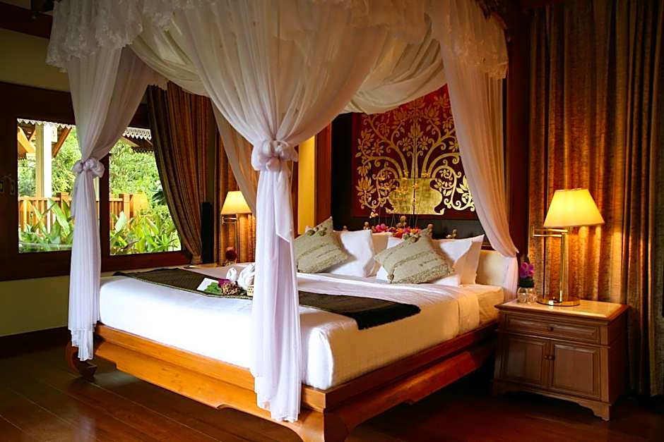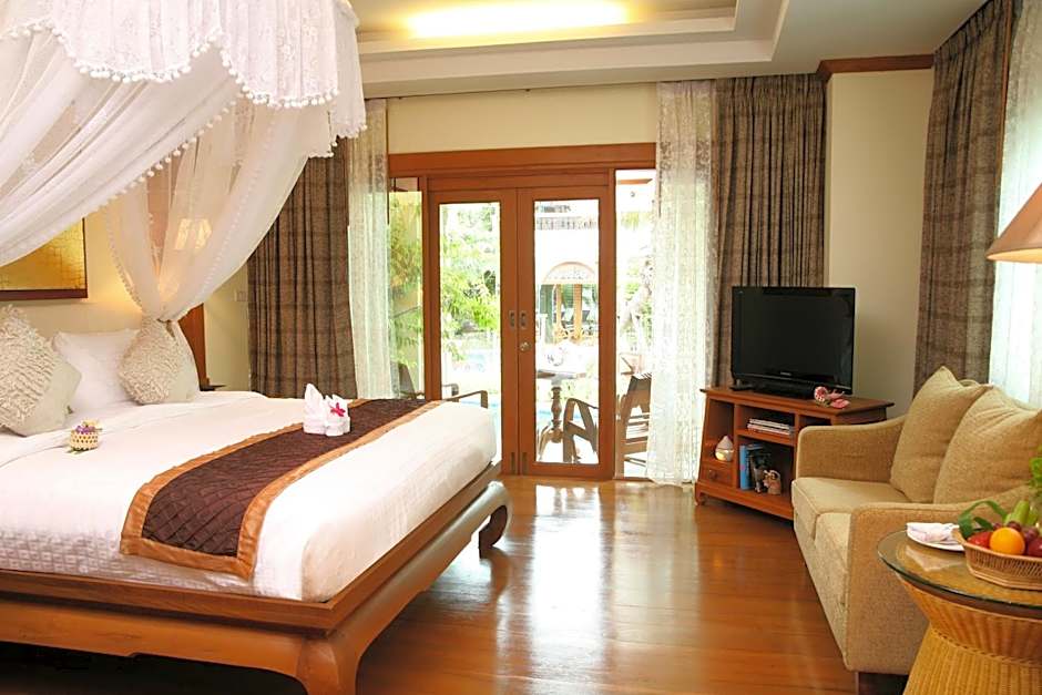 Thai-style room with 32-inch flat-screen TV, spa bath, free Wi-Fi. It offers views of the garden and pool.