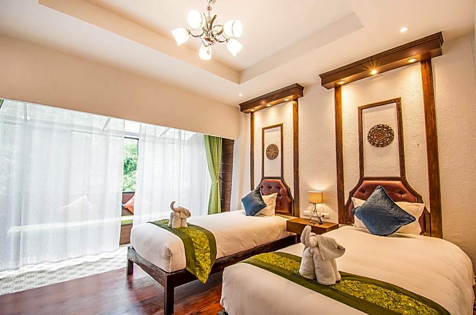 At E-outfitting Doikham Resort, guests can choose from rooms ranging from Standard Twin Rooms to Deluxe Family Suites. The occupancy of the rooms varies from accommodating 2 adults and 1 child to 6 adults and 1 child. Smoking is not allowed in any of the rooms, and bed sizes include twin, king-size, or a combination of both in different room types.