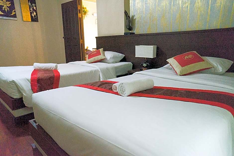 Noble Place Chiangmai offers a variety of room types including Superior Triple Rooms that can accommodate 3 adults with a twin bed and double bed. Deluxe Double or Twin Rooms can accommodate 2 adults and 1 child with 2 twin beds. Family Rooms have the largest size at 1033 sqft and can accommodate 4 adults and 1 child with multiple twin beds, a king size bed, and a queen size bed. Superior Twin Rooms can accommodate 2 adults with 2 twin beds. Standard Double or Twin Rooms can accommodate 2 adults and 1 child with a double bed. All rooms are non-smoking.