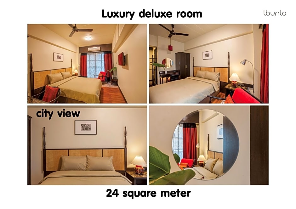 The rooms available at RCN Court & Inn include Deluxe Twin, Deluxe Double with Balcony, and Deluxe Double. The Deluxe Twin and Deluxe Double rooms have a room size of 258 sqft, while the Deluxe Double room is slightly smaller at 215 sqft. Smoking is not allowed in any of the rooms. The Deluxe Twin room has 2 twin beds, while the Deluxe Double with Balcony and Deluxe Double both have either a king size or queen size bed.