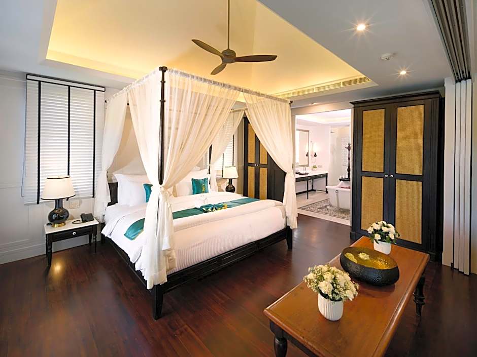 After a day spent exploring the bustling streets and colorful markets surrounding , there's no better way to unwind than by plunging into the outdoor pool. The pool offers stunning views of the iconic local landmarks and lush gardens, creating a picture-perfect setting for both families and solo travelers alike. Whether you want to swim some laps, play with the kids, or simply relax on the comfortable beach chairs soaking up the warm Thai sun, the pool area is designed for all ages to enjoy.
