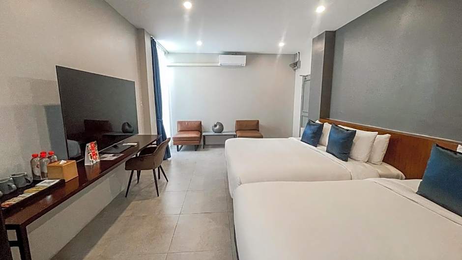 offers a diverse slate of rooms to fit different travel plans. Options include Deluxe with a King bed, Superior with a Queen bed, Standard rooms with Twin beds, and Economy rooms on the Groundfloor. For families or groups, the Family suite accommodates up to eight adults and four children, ensuring space to spread out after a day of sightseeing.