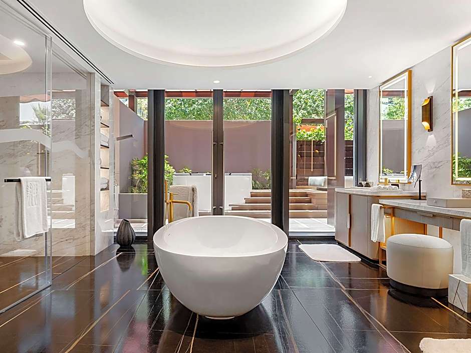 This spacious suite is consisted of of 1 living room, 3 separate bedrooms and 3 bathrooms with a walk-in shower and free toiletries. Guests can make meals in the kitchen that comes with a stovetop, a refrigerator, kitchenware and a microwave. This suite is air-conditioned and features a seating area with a flat-screen TV, a private entrance, a tea and coffee maker, a dining area, as well as a wardrobe. The unit offers 4 beds.