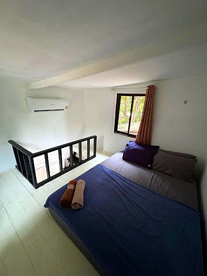 This double room features a balcony, a mosquito net and a private bathroom. Guests can enjoy garden views.