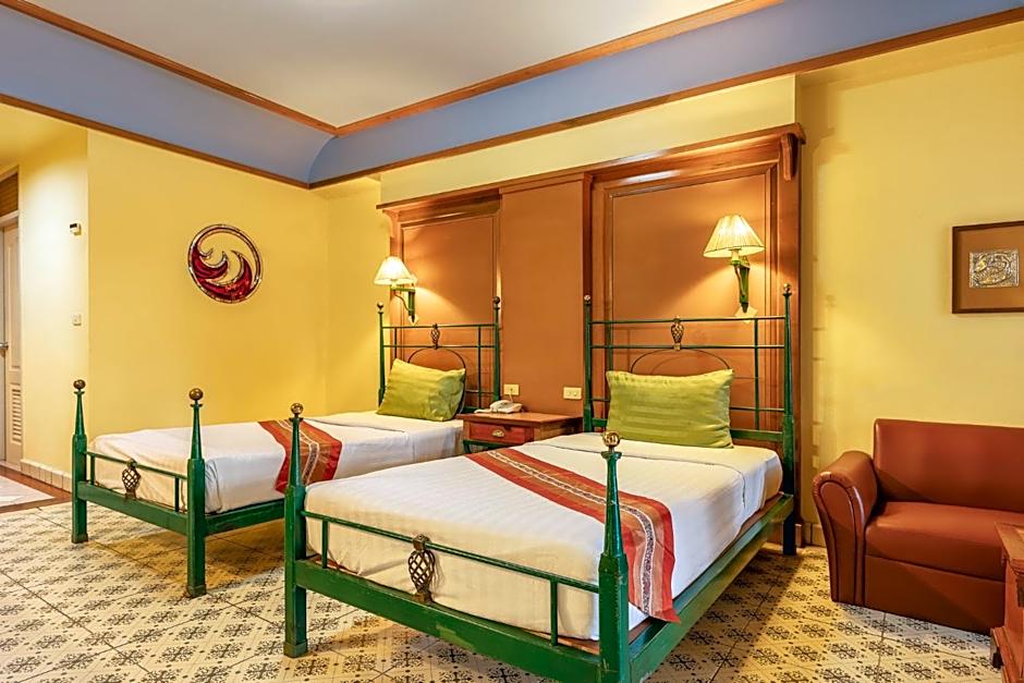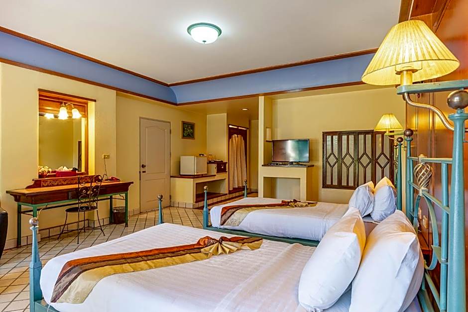 Pung-waan Resort & Spa offers a variety of room types, including Superior Double or Twin Room with Garden View for single occupancy, Spa Deluxe Double Room with River View, and Deluxe Double or Twin Room with River View. Smoking is not allowed in any of the rooms. Beds in the rooms consist of a mix of two Twin beds and one Queen size bed, comfortably accommodating both adults and children. The room sizes range from 366 sqft to 463 sqft.