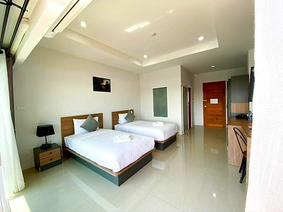 The River Kwai View Hotel offers two types of rooms. The Superior Twin Room with City View features two twin beds, accommodates 2 adults, and has a size of 258 sqft. Smoking is not allowed in this room. The Deluxe Double or Twin Room with River View offers a king-size bed and two twin beds, accommodates 2 adults, and has the same size of 258 sqft. Smoking is also not allowed in this room.