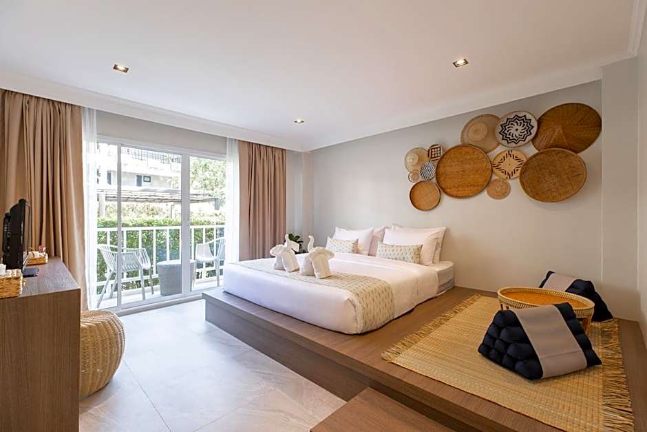 The hotel offers a variety of rooms including Simple Thai Double and Twin Rooms with Balcony, Local Thai Double and Twin Rooms with Balcony, and Tropical Thai Double and Twin Rooms with Balcony. All rooms have a size of 344 sqft and smoking is not allowed. The rooms accommodate either 2 adults and 1 child or 3 adults and 1 child, with bed options including king size beds, twin beds, and queen size beds.