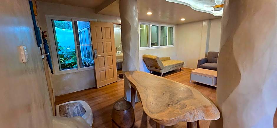 The family room's kitchenette, which has a refrigerator and an electric kettle, is available for cooking and storing food. This air-conditioned family room is comprised of a flat-screen TV with cable channels, a private bathroom as well as a balcony with garden views. The unit has 2 beds.