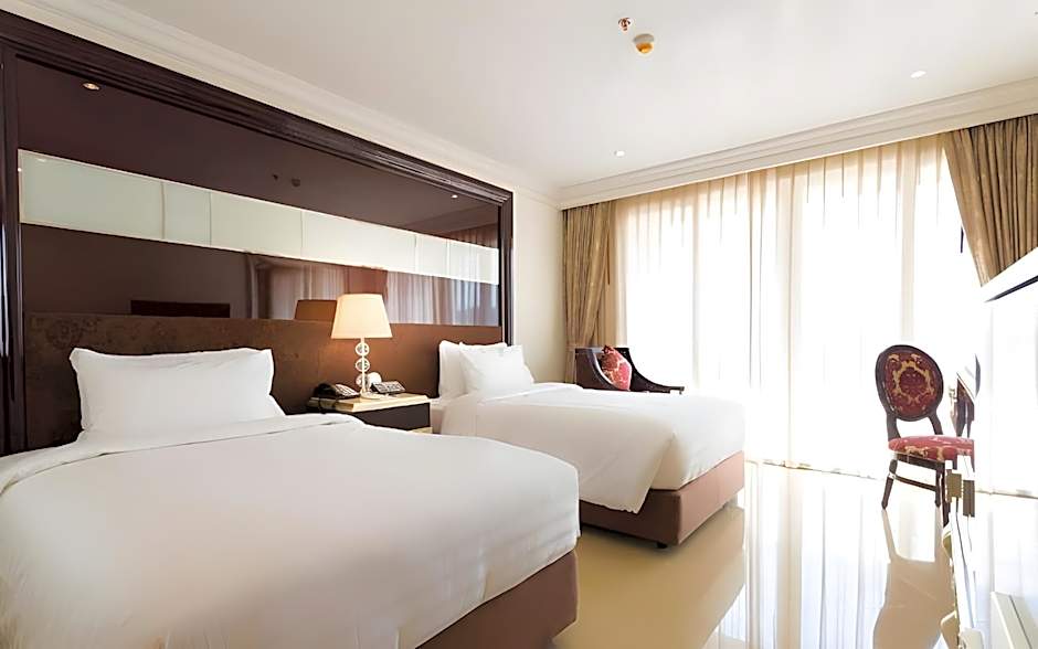 Rooms at LK President Hotel vary from Deluxe 1 King and 2 Beds rooms to Deluxe King and Twin rooms. They can accommodate 2 adults, 1 child and offer non-smoking options. Bed sizes range from King, Queen, and Twin beds, with room sizes varying from 366 sqft to 1076 sqft.
