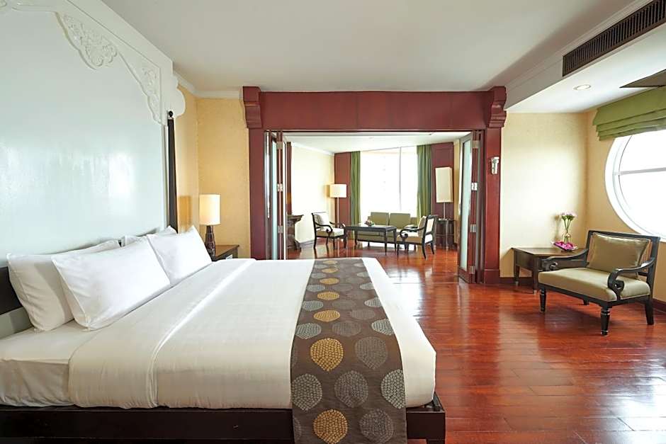 The hotel offers a variety of room types including Standard Rooms, Deluxe Rooms, Suites, and Villas. The occupancy ranges from single occupancy to quad occupancy. Rooms are available with smoking and non-smoking options, and feature bed sizes from queen to king, with room sizes varying based on the room type.