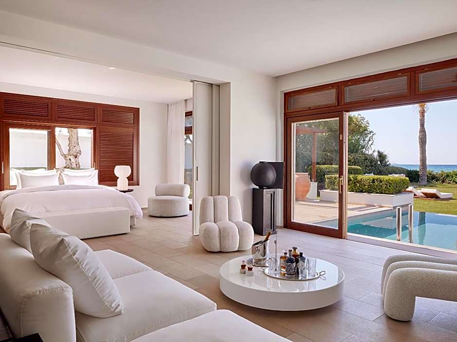 Accommodations include a Villa with Private Pool, a 1507-square-foot, non-smoking setup that accommodates up to 6 adults and 1 child, featuring 2 queen beds and a sofa bed. A Villa, 5 Bedroom is also listed, non-smoking, with details on bed configurations not provided. On-site essentials include free WiFi, a 24-hour front desk, barbecue facilities, and plentiful spaces to unwind, with beach access and free umbrellas nearby for easy days by the shore.