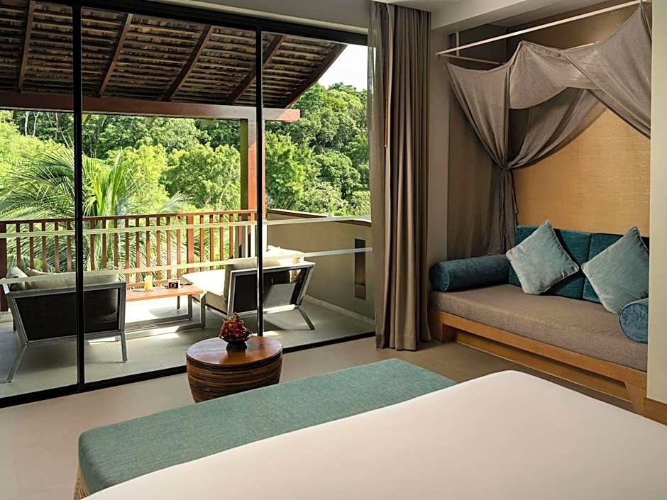 Les choix d’hébergement vont du Deluxe avec accès piscine (592 sqft, soit environ 55 m²) aux suites dotées de mini-piscines privées (plunge pools) ou de bains à remous. De nombreuses chambres disposent de balcons offrant une vue sur le jardin, ainsi que de terrasses ou patios encadrés par des espaces verts. Parmi les options notables figurent la Hideaway Suite avec piscine privée, la Suite avec plunge pool et les chambres Premier avec lit King et accès piscine, ainsi que d’autres configurations deluxe et familiales. Tous les espaces acceptent la préférence non-fumeur, ce qui facilite le choix d’une configuration adaptée aux couples comme aux familles.