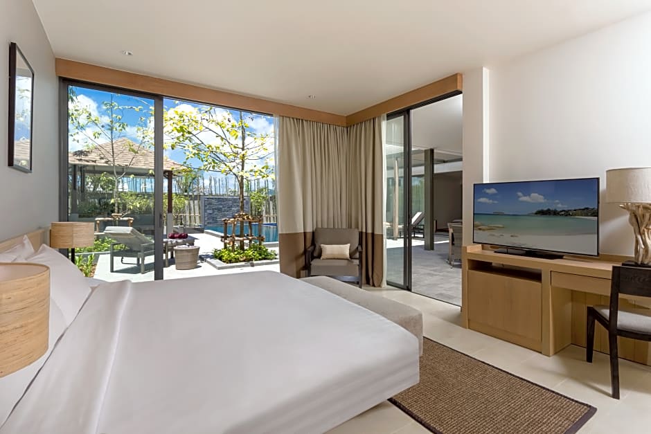 Casabay 4 Bedroom Private Pool Villa with Partial Seaview is 3767 square feet and includes a king-size bed 150-183 width plus living room and balcony.