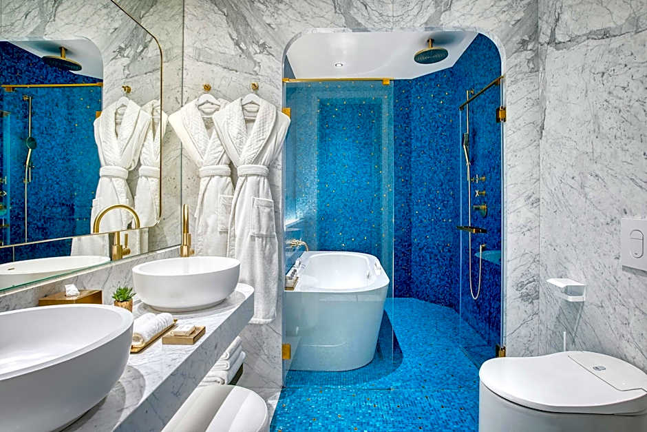 Penthouse Suite is located on the top-level floor and has a beautiful view of Patong and Patong Bay. It is decorated with Thai decor and comes with a kitchenette, spacious living area and a large marble bathroom with a king-size spa bath.