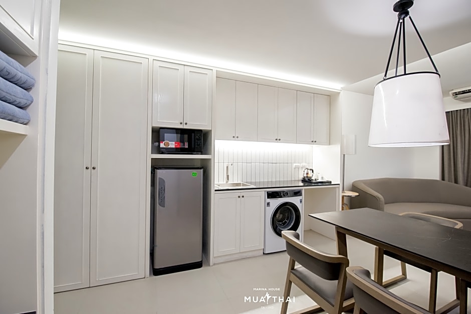 This suite includes 1 living room, 1 separate bedroom and 1 bathroom with a shower and free toiletries. The well-fitted kitchenette has a refrigerator, a microwave and an electric kettle. The air-conditioned suite offers a flat-screen TV with satellite channels, a washing machine, a seating area, a dining area as well as pool views. The unit has 2 beds.