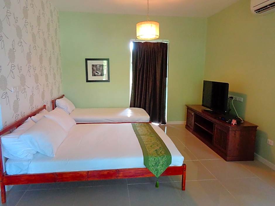 The Hillside Pranburi Resort offers a variety of room types including Family Rooms with Mountain View, Bungalows with Garden View, Double Rooms with Garden View, and One-Bedroom Chalets. Smoking is not allowed in any of the rooms. The Family Room with Mountain View accommodates 4 adults and 1 child, the Bungalow with Garden View accommodates 3 adults and 1 child, the Double Room with Garden View accommodates 2 adults and 1 child, and the One-Bedroom Chalet accommodates 5 adults and 1 child. The bed sizes vary depending on the room type, with options such as twin beds, queen-size beds, and double beds.
