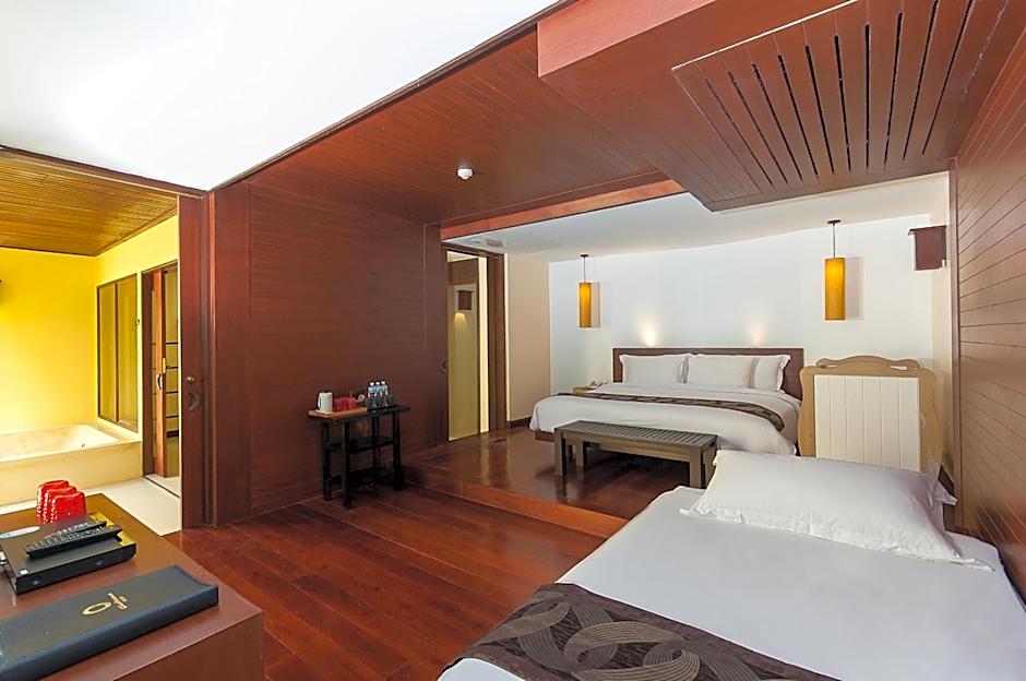 After a day of basking on the beach and exploring the vibrant surroundings, why not unwind at the resort’s inviting outdoor pools? Take a splash in the main pool, which offers a shallow end perfect for relaxing or splashing around, all while soaking in stunning views of the garden and ocean. For families traveling with little ones, the kids-only outdoor pool is a fun, safe spot where the young ones can enjoy themselves to their heart’s content. It’s the perfect way to cool off and unwind under the warm Thai sun, creating unforgettable moments for everyone in your party.