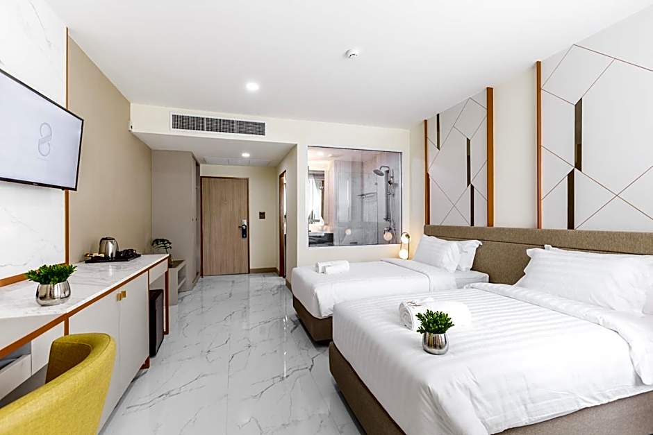The 8 Hotel Udonthani offers Deluxe Double Rooms and Deluxe Twin Rooms. Both room types do not allow smoking and can accommodate 2 adults and 1 child, with bed configurations of 1 King size bed in the Double Room and 2 Twin beds in the Twin Room. The room size for both types is 269 sqft.
