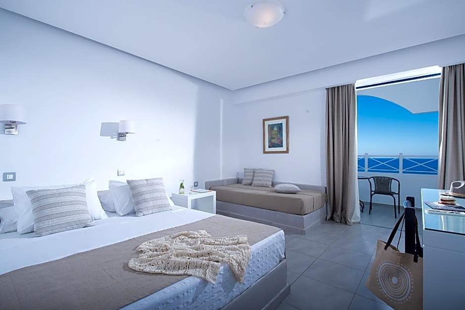 Odalar klima, sigara içilmeyen seçenekler, balkonlar ve dağ veya bahçe manzaralı teraslar sunar. Ek ayrıcalıklar arasında özel giriş, teras ve racketbol (ücretsiz), oyun alanı ve ücretsiz çocuk yemekleri gibi aktivitelere erişim bulunur. Plajın yakınlığı ve kasabaya kolay ulaşım imkanı ile bu destinasyon güneş severlere, ailelere ve canlı bir Yunan deniz kenarı kaçamağı arayan gezginlere uygundur.