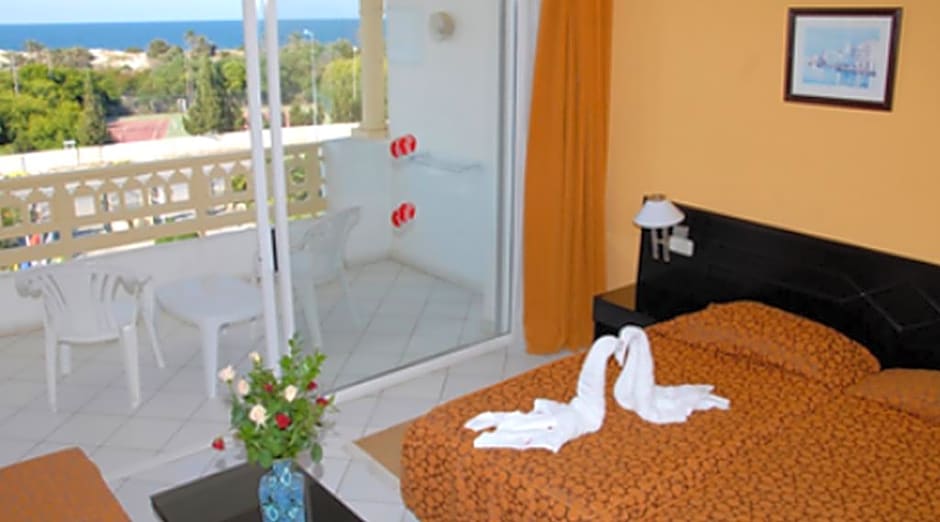 The air-conditioned rooms feature satellite TV and a private balcony with views on the pool, the sea or the garden.