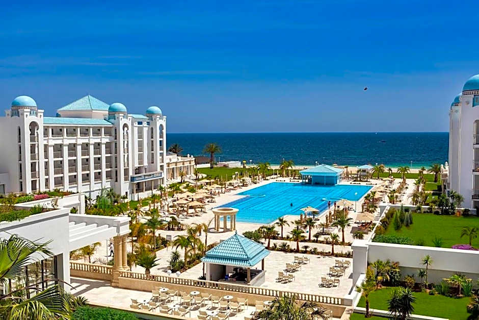 Welcome to the luxurious , a stunning 5-star retreat nestled just from the heart of Port El Kantaoui in Tunisia. Starting at only a night, this beachfront paradise offers gorgeous ocean views and direct access to its private sandy beach area, perfect for relaxing under the sun or taking a refreshing dip in their indoor or outdoor pools. The hotel’s vibrant yet peaceful setting is complemented by lush gardens and a terrace, making every moment a postcard-perfect experience.