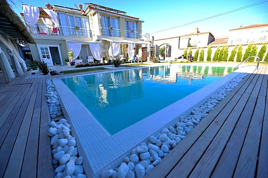 Welcome to Sade Alacati Hotel, where charm meets comfort just a short 0,3mi stroll from the vibrant heart of Alaçatı! This delightful 4-star bed and breakfast invites you to indulge in a relaxing getaway with its lush garden, inviting outdoor swimming pool, and sun deck perfect for soaking up the Turkish sun. Whether you're lounging under beach umbrellas or sipping on refreshing drinks at the bar, every moment here promises to be memorable.