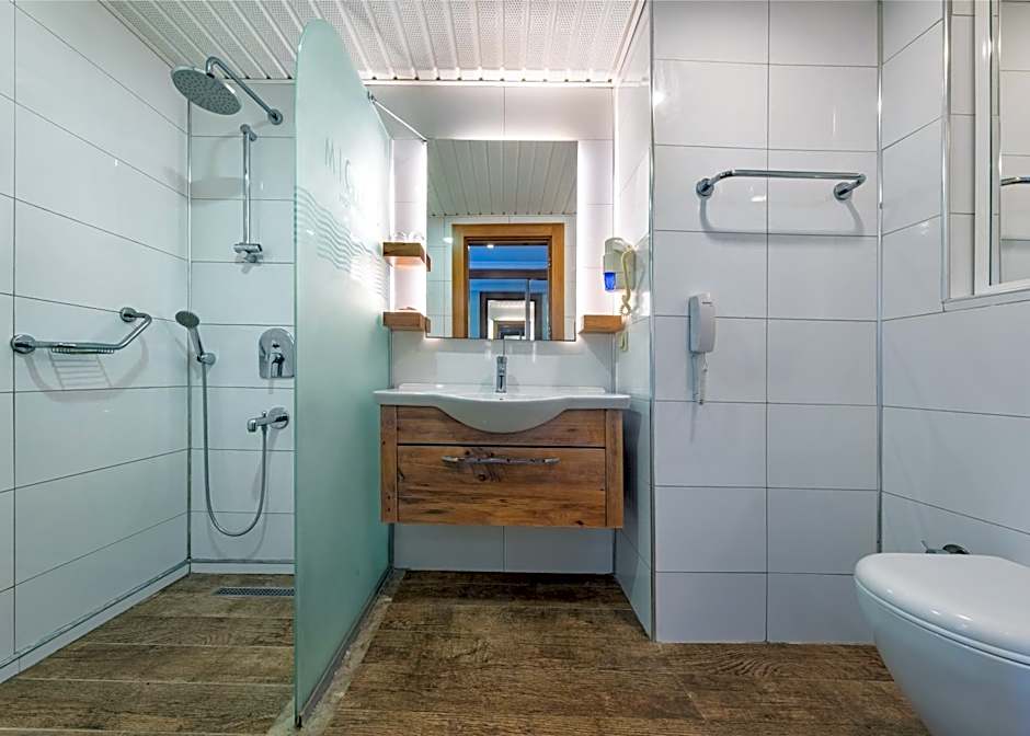 The spacious air-conditioned double room offers a flat-screen TV with satellite channels, soundproof walls, a mini-bar, a tea and coffee maker as well as garden views. The unit offers 3 beds.