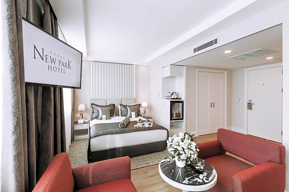 The luxury Suite Room at New Park Ankara hotel offers guests a comfortable and elegant stay, boasting a spacious area of 45 square yards. This exclusive room option is equipped with a separate living room and bedroom, providing ample space for guests to relax. Luxurious furniture and stylish decor add sophistication to the rooms, while modern amenities such as high-speed internet access and a flat-screen TV are provided.