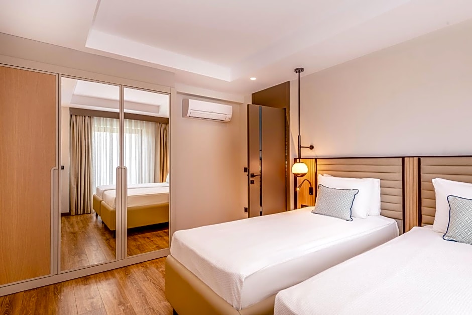 The Belek Beach Resort Hotel offers a variety of room types, including standard rooms, family rooms, and suites. Occupancy varies from double occupancy in standard rooms to larger capacities in family rooms and suites. Smoking is not allowed in any of the rooms, and beds range from single to king size, depending on the room category.
