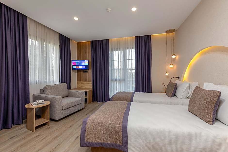 is a stylish 4-star hotel in Antalya, Turkey, just from the city center. Address: Çağdaş Sokak 36/A. Breakfast is offered, and on-site highlights include a Restaurant, an outdoor swimming pool (free), and free private parking and Wi-Fi, all complemented by air conditioning and a 24-hour front desk.
