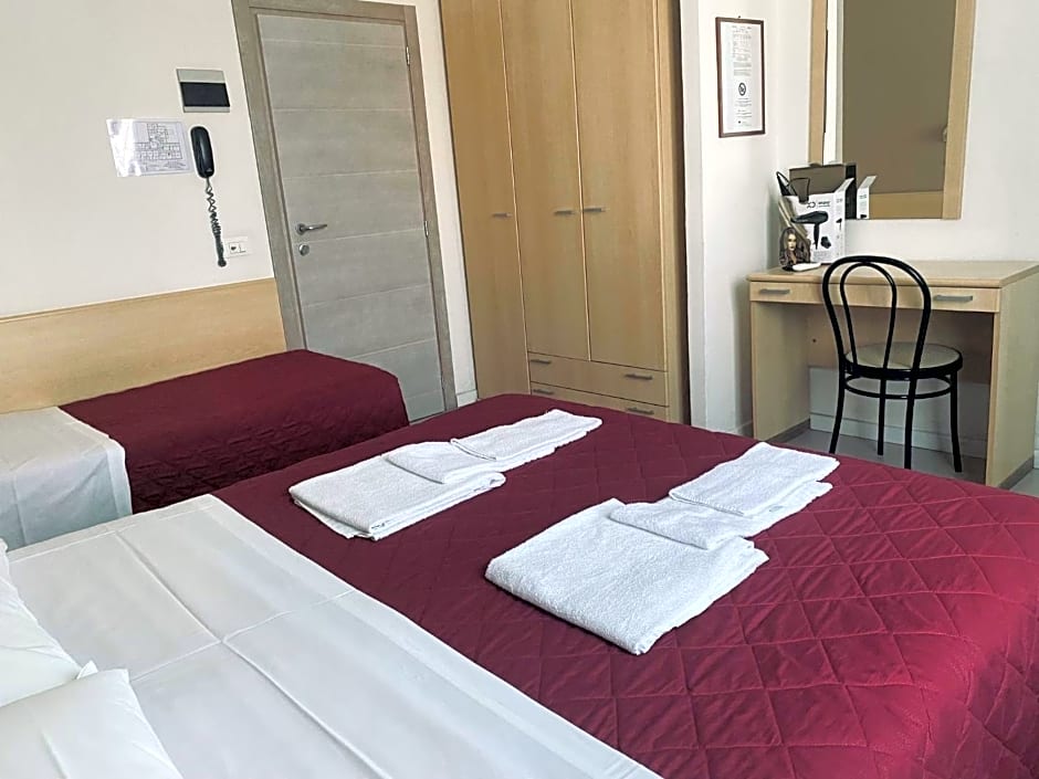The triple room includes a shared bathroom fitted with slippers. The triple room has city views. The unit has 3 beds.