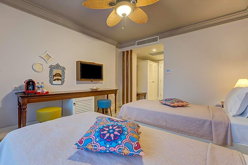 The air-conditioned twin room features a flat-screen TV with satellite channels, a mini-bar, a tea and coffee maker, a wardrobe as well as sea views. The unit has 2 beds.