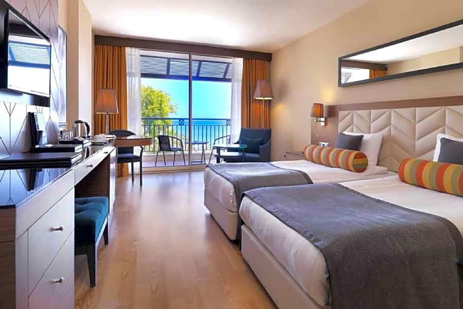 The spacious twin/double room provides air conditioning, soundproof walls, a balcony with sea views as well as a private bathroom featuring a shower.