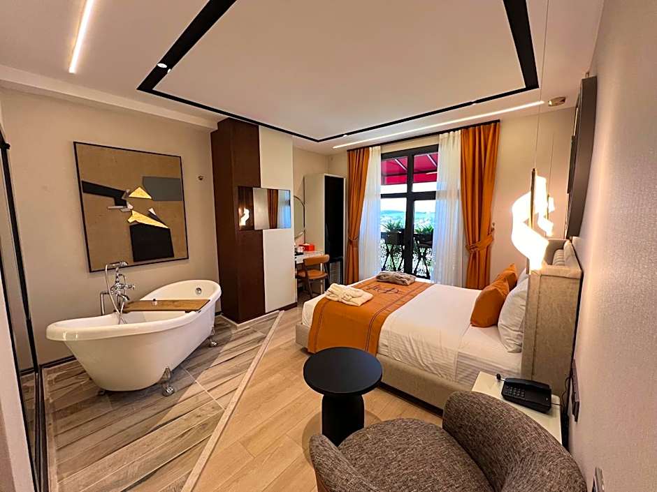 This double room's special feature is the hot tub. Providing free toiletries and bathrobes, this double room includes a private bathroom with a bath, a shower and a hairdryer. The air-conditioned double room provides a flat-screen TV with satellite channels, soundproof walls, a mini-bar, a tea and coffee maker as well as city views. The unit offers 1 bed.