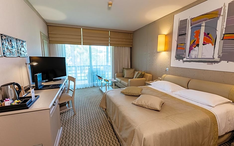 Guest amenities blend family-friendly fun with relaxation: free parking and WiFi, a restaurant and bar, plus indoor and outdoor pools, a kids' club, and a kids' pool. Spa touches come courtesy of free Turkish/steam baths and saunas, while additional indulgences—spa/wellness packages, water sports on site, and a golf course—are available for extra charges. Extra services include shuttle options, meeting/banquet facilities, babysitting, and kid-friendly buffet options with free kids' meals; the property also offers soundproof rooms, air conditioning, balconies, and garden views.