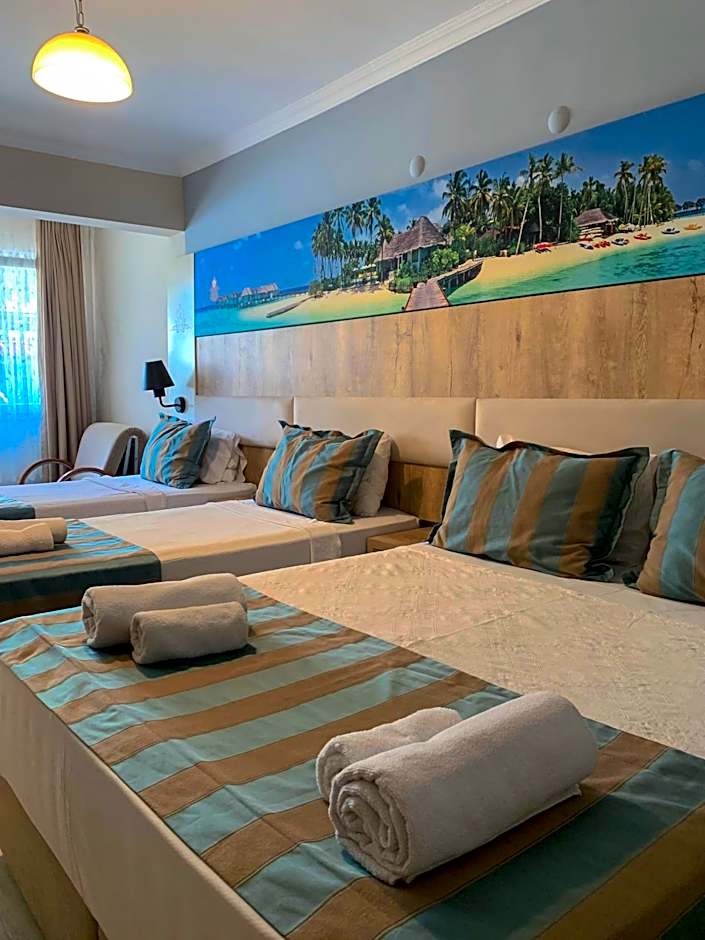 Akkan Beach Hotel offers Standard Triple, Family, and Deluxe Double rooms. Smoking is not allowed in any room type. The rooms accommodate 2, 3, or 4 adults and offer bed options such as Twin, Queen, and Double beds. Room sizes range from 194 to 366 square feet.
