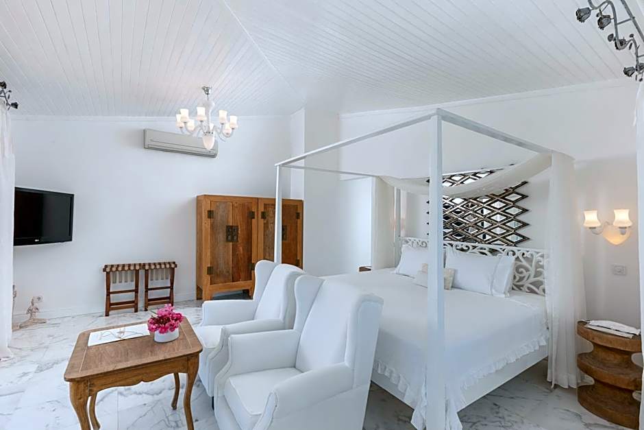 Overlooking the inspiring landscape of Bozburun through its panoramic windows, this recently-renovated unit comes with a 131 ft² terrace and outdoor hot tub for your comfort. You can easily access to the sea by walking through lush garden. Offering 18 foot high ceiling and natural wooden floor, this 262 ft² spacious room features a king size bed and a dressing room.