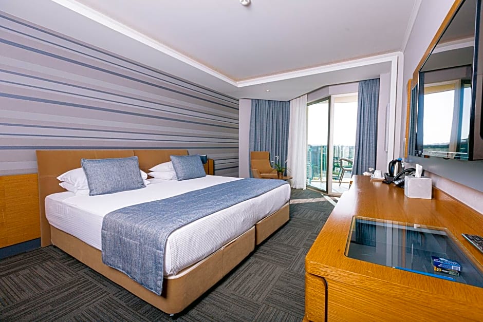 Located on the upper floors of the building, this room has a large balcony and sea views.