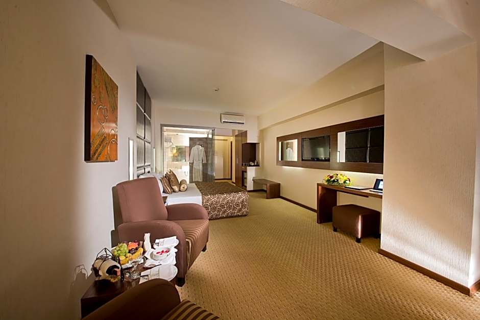 Spacious suite featuring LCD TV with satellite channels and a mini-bar.