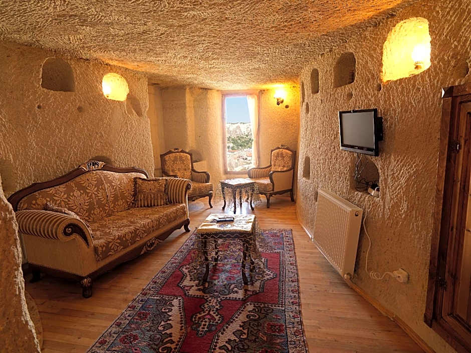 This room has a seating area with panoramic Goreme views.