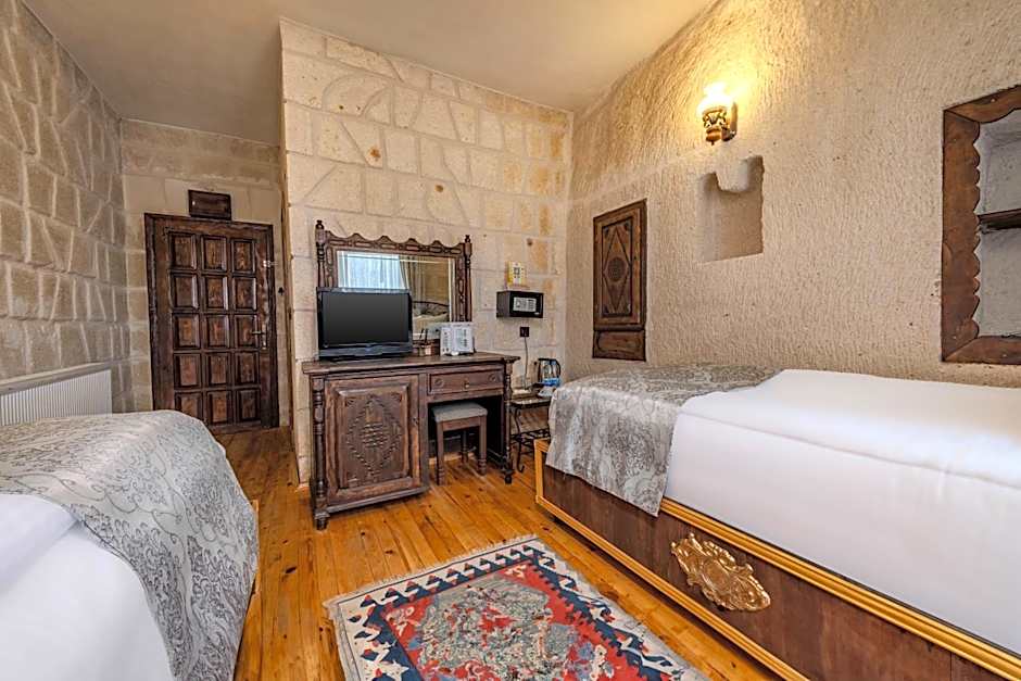 The hotel offers various types of rooms including Superior Cave Suites, Design Cave Suites, Family Cave Suites, Romantic Stone Rooms, Premium Cave Suites, Signature Cave Rooms, Special Stone Rooms, Deluxe Cave Suites, Royal Cave Suites, Junior Cave Suites, Basic Stone Rooms, Premier Cave Suites, Love Cave Suites (no window), Economy Cave Rooms (no window), Standard Stone Rooms, Ascension Cave Suites (with terrace), Classic Cave Suites, Comfort Cave Rooms, Elite Cave Suites (with a terrace), and Traditional Stone Arch Suites. The occupancy for the rooms ranges from 2 adults with no children to 4 adults and 3 children. Smoking is not allowed in any of the rooms. The bed sizes vary, including options of Queen, Twin, Double, King, and Sofa Bed.