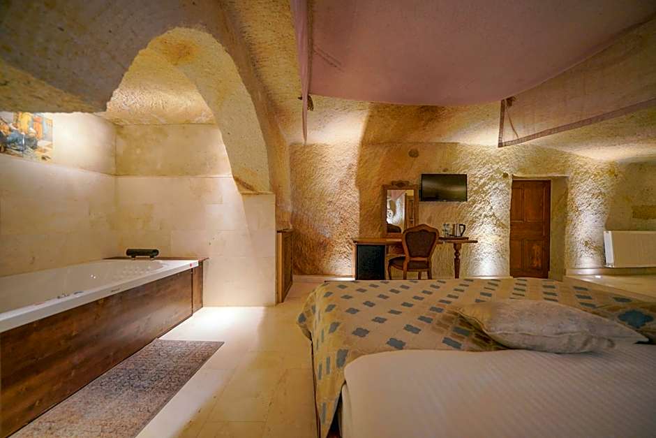Featuring stone walls and an arched ceiling, this cave suite is decorated with traditional handmade furniture. It includes a orthopedic bed, underfloor heating, LED TV with satellite channels and a private bathroom with a spa bath by the window. It also offers a terrace with views over Cappadocia.