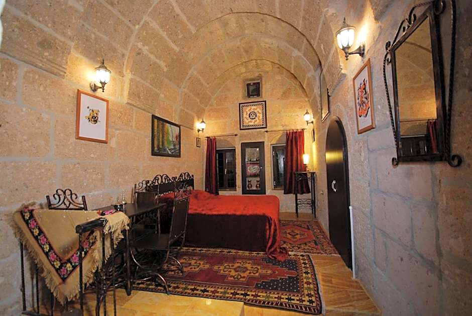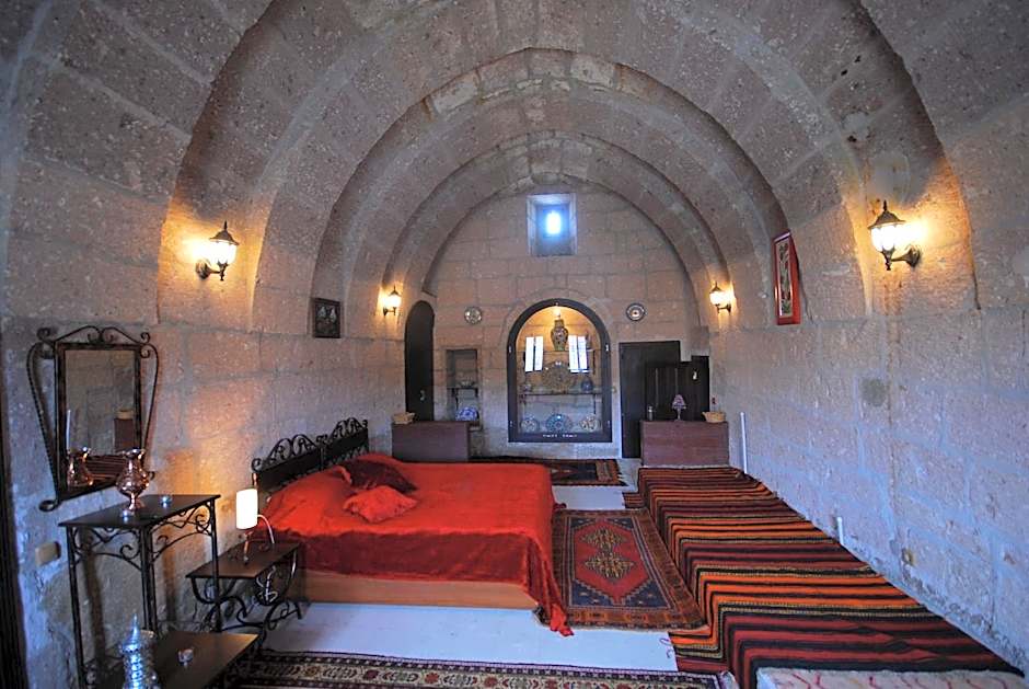 Spacious historical arched room offering traditional Turkish decor and a seating area.
